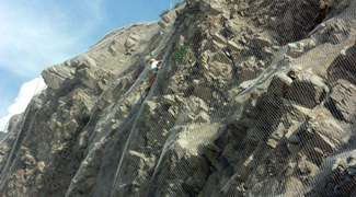 KN)編制并在結(jié)點處用專用“十字扣”固定而成,為邊坡防護網(wǎng)的主要特征構(gòu)件之一,在主動防護中通過鋼絲繩網(wǎng)的覆蓋來實現(xiàn)邊坡的加固,其開放特征可以實現(xiàn)對坡面天然植被和植被生長條件的**佳保護,實現(xiàn)環(huán)境保護與災(zāi)害治理的有機結(jié)合;在被動防護系統(tǒng)中,其柔性特征充分體現(xiàn)了“...